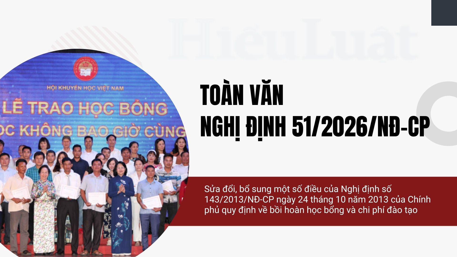 Toàn văn Nghị định 51/2026/NĐ-CP (file word) đưa ra quy định mới về bồi hoàn học bổng và chi phí đào tạo sử dụng nguồn ngân sách Nhà nước.